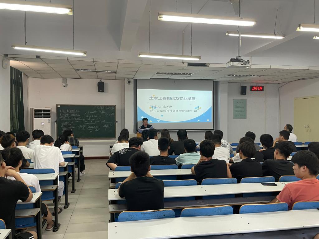 6月22日,土木工程系邀请郑州大学综合设计研究院有限公司高级工程师余术刚博士来我校开展学术讲座,讲座在南教105进行,土木工程系2019级建工、建工-国际、装配班全体在校生参加。
