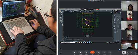 图4 学生在家中绘图 图5 师生视频交流