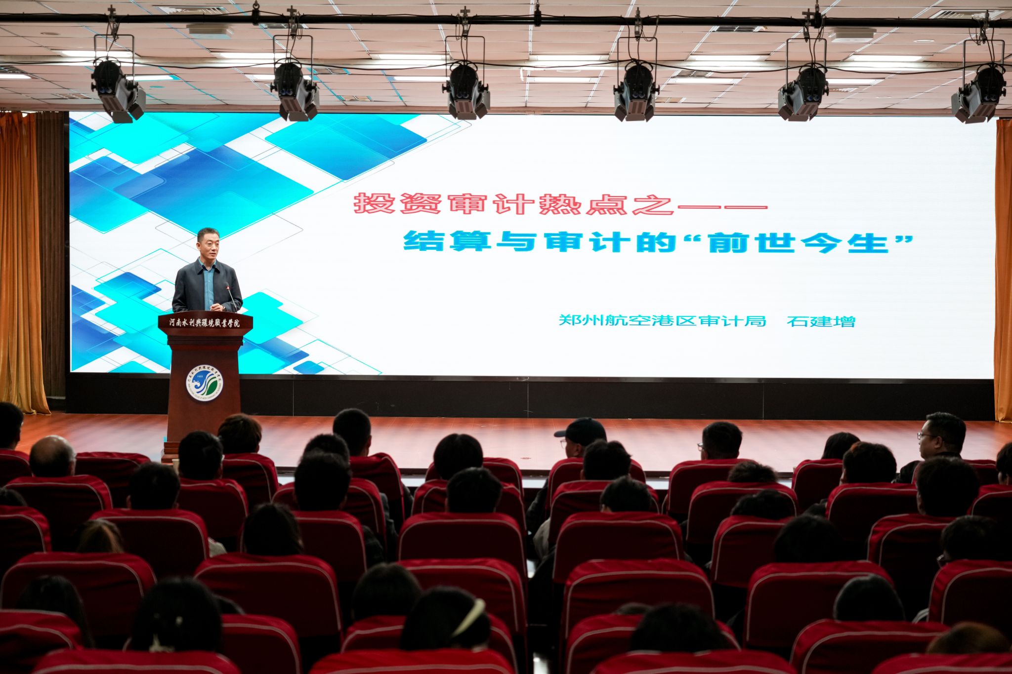 杰出校友代表1999届校友郑州航空港区审计局投资科长石建增以“投资审计热点之一——结算与审计的‘前世今生’”为题作专题报告。他结合自身经历分享“坚守数据真实底线、拥抱技术革新”的行业认知,并强调母校赋予的严谨务实态度与终身学习理念是从业行稳致远的根本。在“校友讲堂”系列座谈会上,2018届校友河南豫林华网络科技有限公司吴仕祺总经理以“创业就业,携手共进、回馈母校、共同发展”,分享自己的创业历程、行业机遇与挑战,并“怀感恩馈母校”为学院捐赠教学设备,鼓励学子“夯技能拥变革”,带着母校的务实底色,实现个人价值;2020届校友华北水利水电大学在读研究生王硕和2022届校友郑州大学在读研究生田泽强以“淬炼青春,不负韶华:在奋斗中实现人生增值”为题,分享母校的学习经历和“参军、升本、考研”的成长历程,鼓励学弟学妹明确目标、踏实奋斗,以持续努力实现人生增值,鲜活经历引发在场学生强烈共鸣。