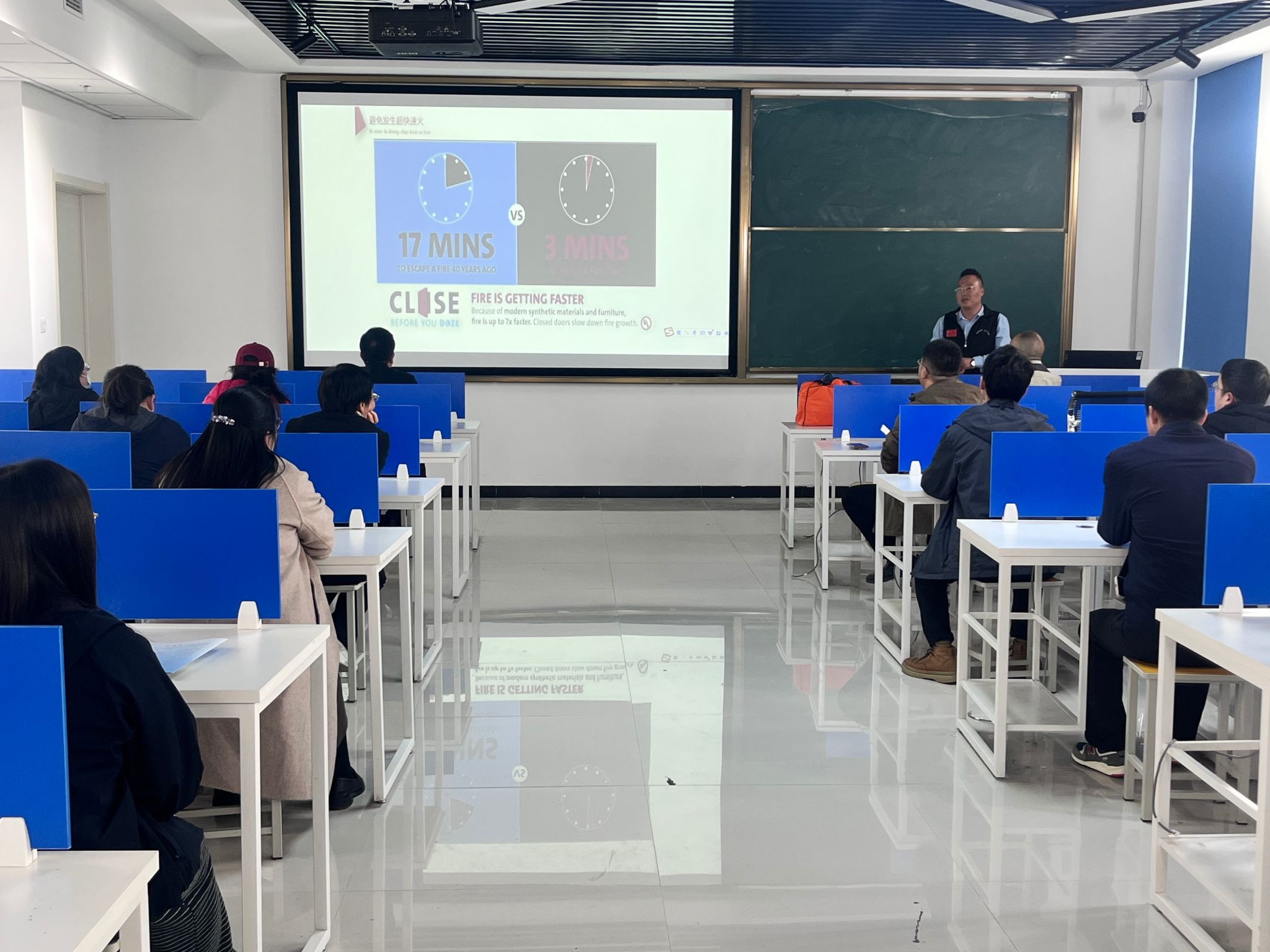 疏散完毕后,学院邀请河南省应急救援协会王胜达教员为师生进行了消防安全知识讲座。王教员通过生动的案例和图片,详细讲解了火灾的危害性、预防措施以及火场逃生技巧等消防安全知识。