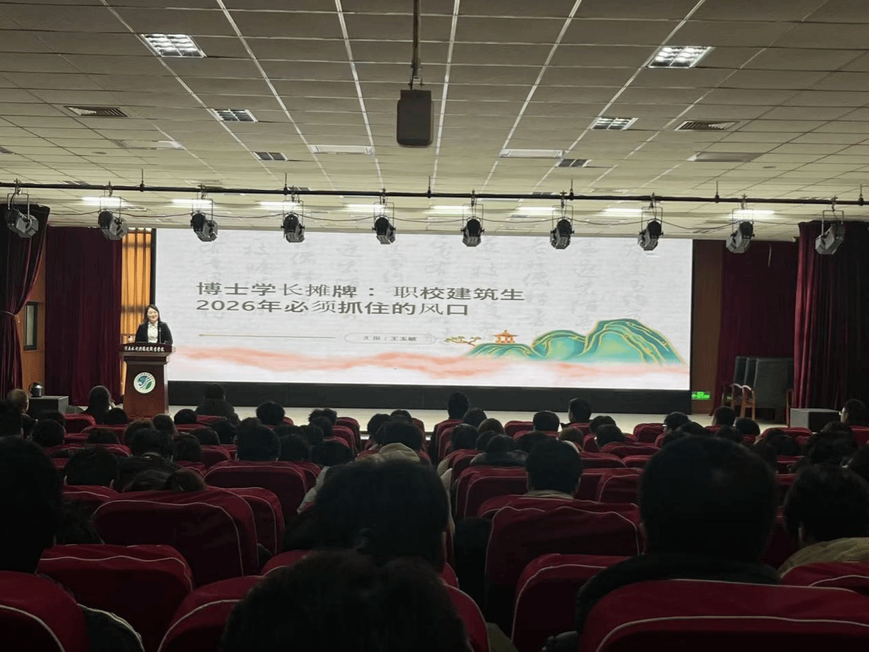 在主题讲座环节,王玉敏以“职校建筑生2026年必须抓住的风口”为题,结合自身多年行业实践,分析了建筑行业向绿色化、智能化转型的趋势,指出第四代住宅、智慧建造、城市更新等领域蕴含大量就业机会,鼓励学生夯实专业技能、主动适应行业变革。
