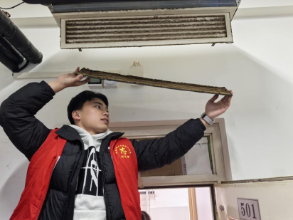 活动中,志愿者们分组奔赴学院各个宿舍,借助专业工具小心拆卸空调外壳,对滤网和内部进行深度清洁,并向同学们讲解空调日常维护要点,提醒定期清洁,确保空调稳定运行。