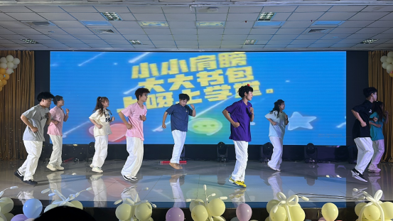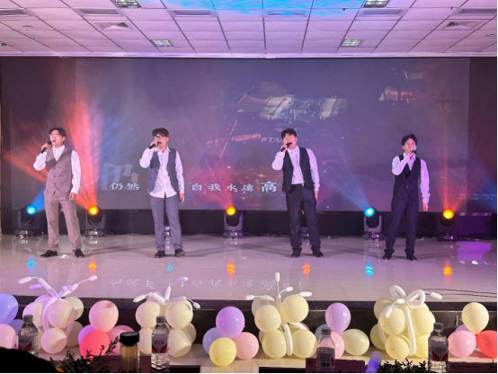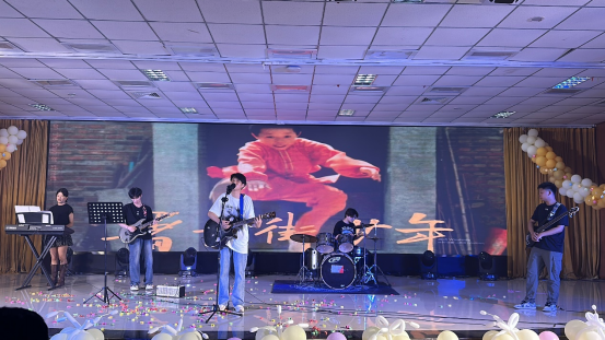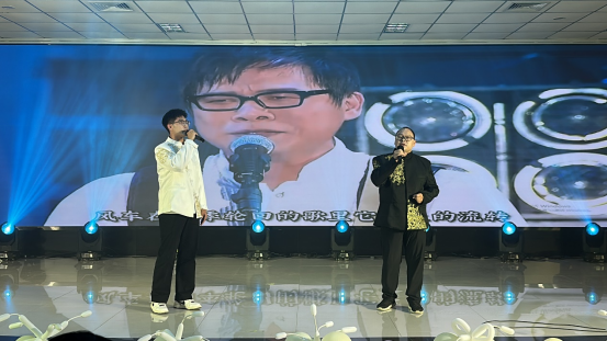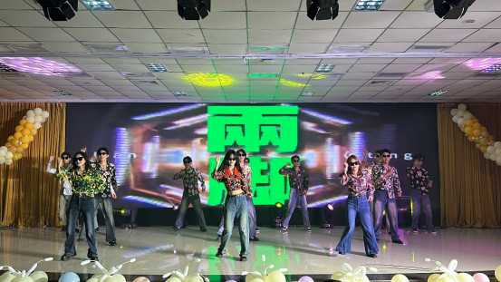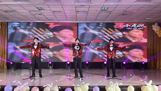 在“怀旧拾光· 80年代”中,舞蹈《不要问我什么是disco》伴随着强劲的音乐,戴着蛤蟆镜、身穿花衬衫和牛仔喇叭裤的表演者们手臂摆动、脚步交换、不断地跳跃旋转,将全场氛围瞬间推向高潮。歌曲《四大天王》和《爱》将时间拉回80年代,让大家感受我国改革政策带来的发展变化。务文涛老师和学生王宇辉合唱歌曲《光阴的故事》,表达了从初入校园到毕业之际,老师给予学生的悉心教导和依依惜别之情。