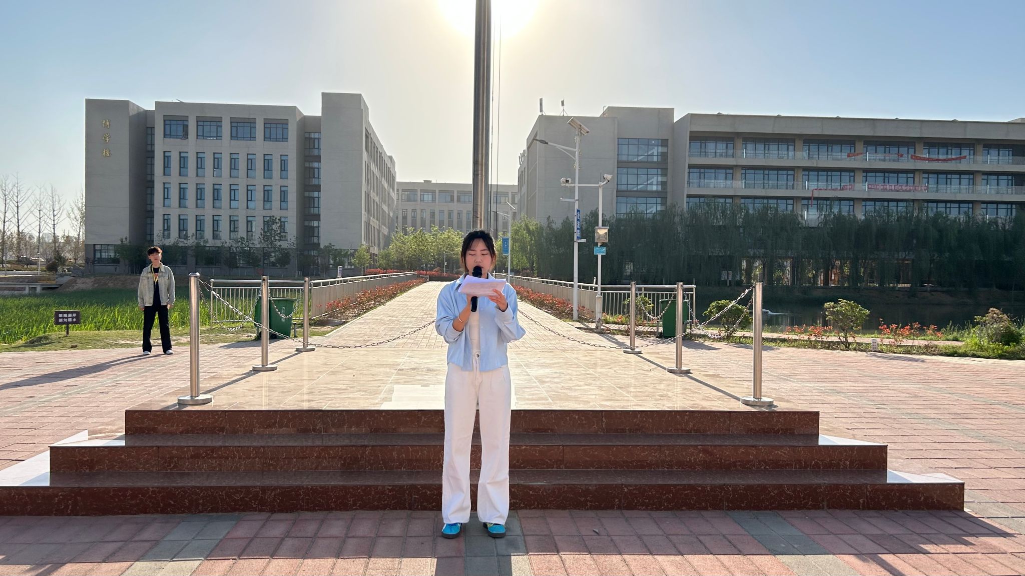 学生代表24造价2班史楷迪以“擎理想火炬 燃奋斗薪火 启大学新程”为主题发表国旗下演讲。她表示,作为新时代大学生,面对困难与挑战,要保持乐观进取的心态,将挫折转化为成长的阶梯,以汗水与智慧谱写青春华章,为实现中华民族伟大复兴贡献青春力量!