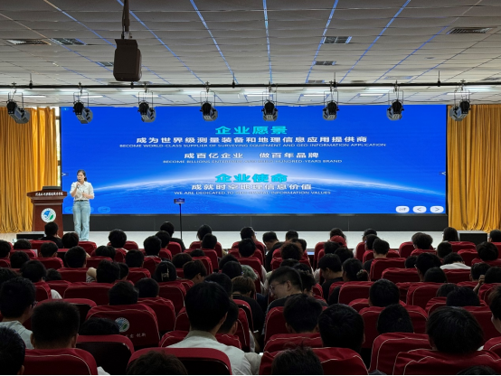 本次招聘会共邀请南方测绘集团、上海浦公检测技术股份有限公司、上海能敏岩土勘测有限公司、园测信息科技股份有限公司扬州分公司、天津欣图科技有限公司等12家企业单位参会。各企业单位的招聘负责人围绕企业发展历程、组织架构、科研成果、岗位需求、员工培训体系和薪资福利等方面进行宣讲,并结合自身经历,向参会学生分享自己求职之道、职业发展规划和测绘行业发展前景等前沿信息。宣讲环节后,各企业单位的招聘负责人与学生进行现场互动,逐一解答学生关心的问题、存在的疑惑。同学们在现场踊跃投递简历,并与招聘单位洽谈交流。