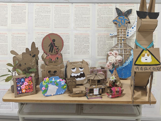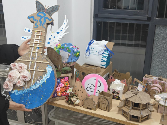 活动通过旧物改造、以物换物的形式开展。同学们发挥创意,将宿舍闲置的旧衣物、光盘、废纸箱、塑料瓶等各种废旧材料进行加工改造,制作成收纳盒、手工玩偶、风铃等物品进行集中展示。
