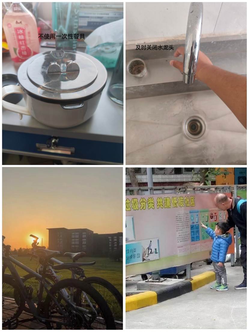 “低碳生活实践挑战”以班级为单位,围绕节能减排的意义、“双碳”含义、“低碳生活”等方面开展治安主题班会,倡导同学们从日常的衣食住行着手,自觉发起节约用水用电、绿色出行、垃圾分类、践行光盘行动、减少铺张浪费等低碳生活实践挑战。