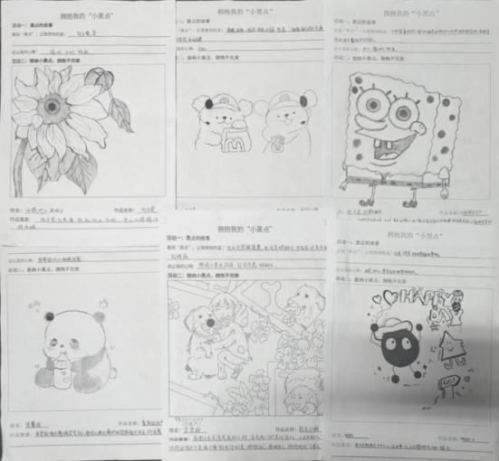 活动要求同学们在保留小黑点的基础上,发挥创意,采取多样化的形式进行绘画创作,阐释作品理念及活动感悟,同学们结合自身经历,把黑点视为自己遇到的困境、挫折和缺点,将其延展成色彩多样、形态各异的线条,把一个个看似无用的“黑点”转化成绘画作品中不可或缺的一部分,用自己手中的画笔把丰富的内心世界展示出来,以画抒情、以画交流。