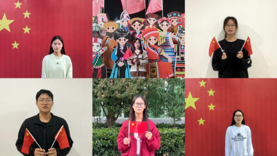 本次主题活动形式多样,同学们可以依据实际情况在主题演讲、红色歌曲传唱、“我为祖国送祝福”中自行选择。活动期间,一些热爱音乐的同学们分工协作,通过歌曲接力的方式传唱《我爱你,中国》等催人奋进的红色歌曲。还有同学通过演讲的方式,以字抒情,他们的演讲稿选题新颖,或回顾新中国成立以来的沧桑巨变,或讲述新时代十年的历史性成就和历史性变革。演讲铿锵有力,娓娓道来,用真挚而富有感染力的声音传递青年担当时代重任的坚定意志和决心。还有一些同学在假期间积极寻找身边的国旗,通过与国旗同框录制短视频的方式,用真挚的情感、质朴的语言向祖国母亲献上最真挚的祝福。