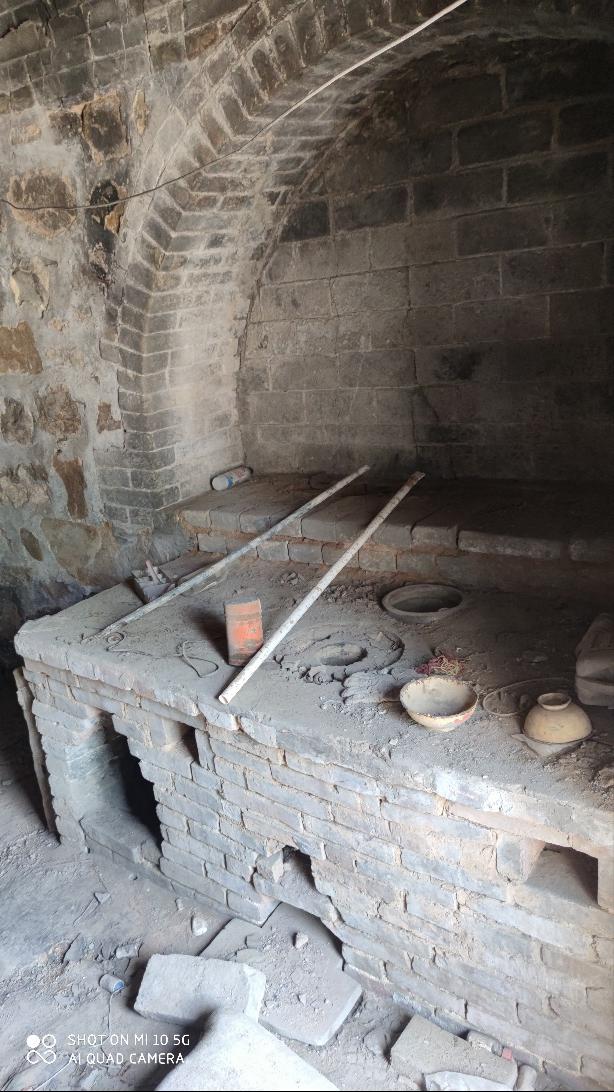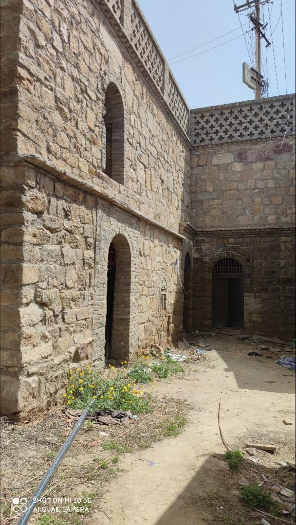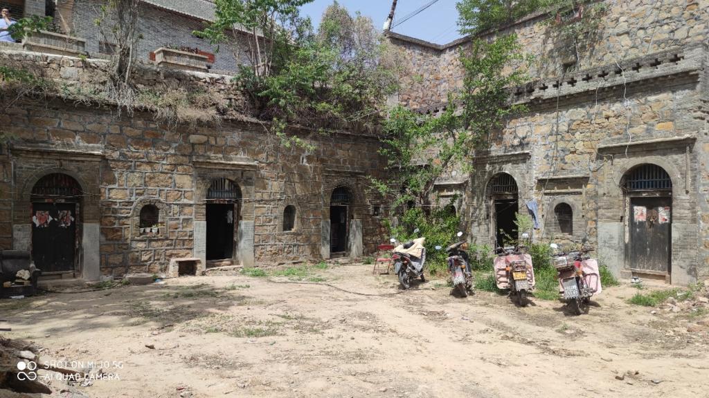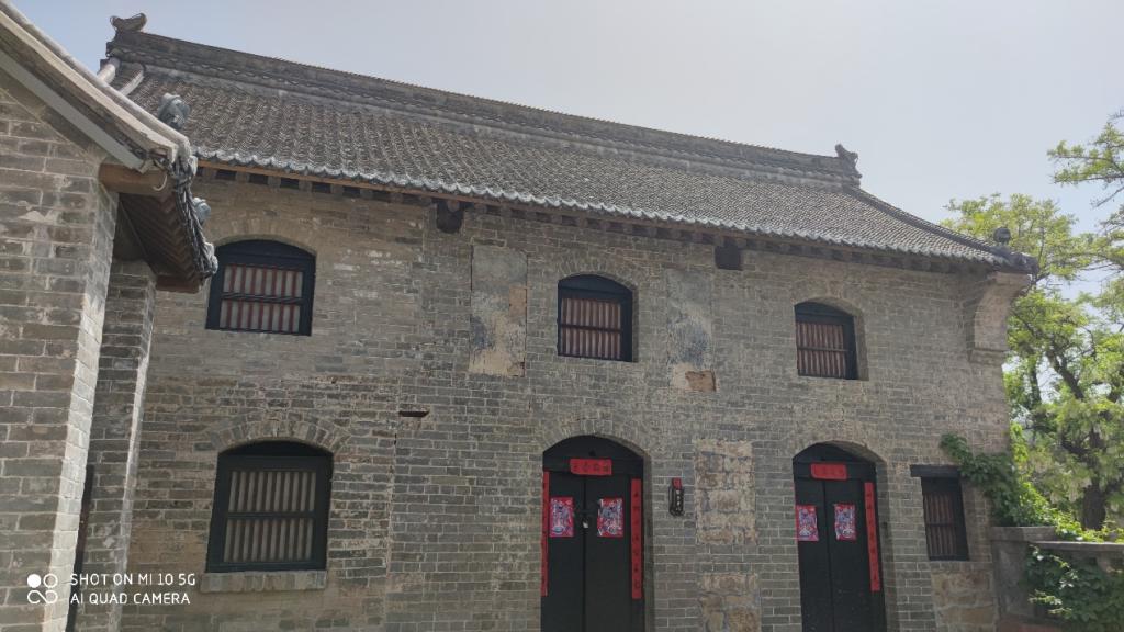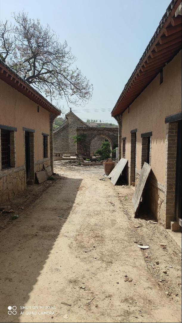 落面阔狭窄,为典型的以靠崖窑为正房,南北瓦房为厢房的窑房院式院落。正房位置的两层靠崖窑首层开挖三孔窑洞,二层仅开挖一孔体量较小的窑洞,二层窑洞前留有平台形成二层庭院空间,靠崖窑均以砖石砌筑窑脸。南北厢房为单坡瓦房,进深尺寸较小,均为三开间,南厢房与第一进院落南厢房紧密连接,北厢房与主窑间隔空间的北侧土崖还开有一孔窑洞。窑洞共5孔,均为一层单孔窑,前檐墙体用毛石及青砖砌筑,门窗、壁龛处用青砖砌筑砖券,窑洞内部用青砖砌筑加固土墙。