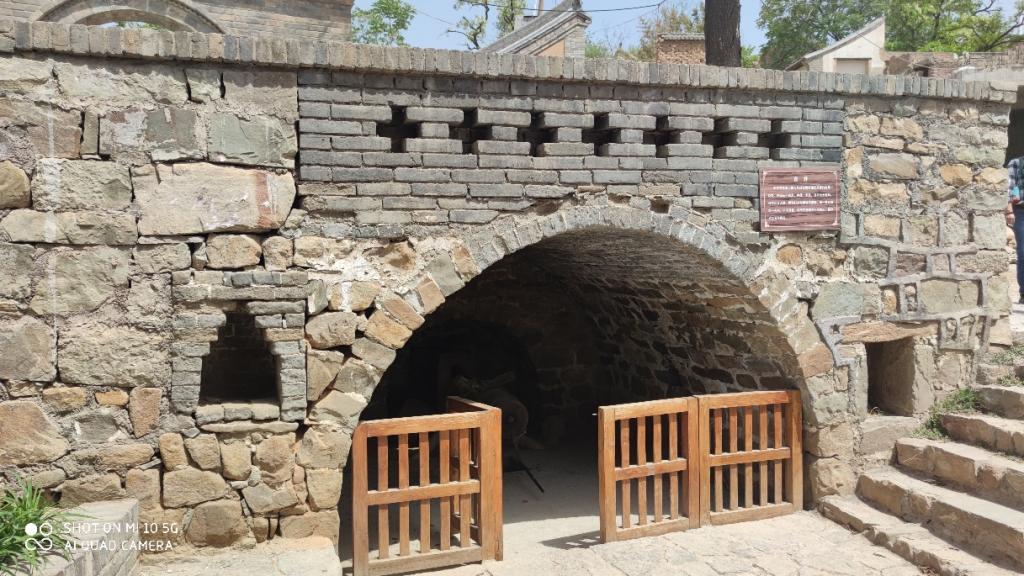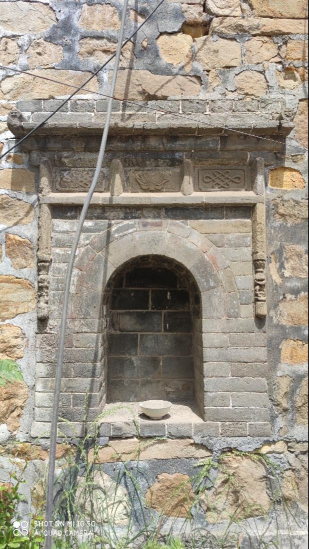 传统村落修筑寨墙以作防止战乱、匪患、猛兽等外部防御之用,寨墙设寨门除了作为重要的防御节点外,还是内外分界的标志和出入村落的主要通道。海上桥村北侧的丘陵台塬与南侧的山谷冲沟形成村落外部的天然防御屏障,东西两侧随山就势修筑寨墙,自然屏障与寨墙共同构筑完整的防御体系,并结合地形与外部交通条件,村落设置东、西、南三座寨门。寨门上原有石匾,东寨门为“晏海门”,西寨门为“虹桥门”,南寨门为“保和寨”。寨墙寨门的设置在满足古时村落防御需求的同时,增强了村落空间的仪式感与村民的归属感,增强了村落内部社会组织的内聚力。