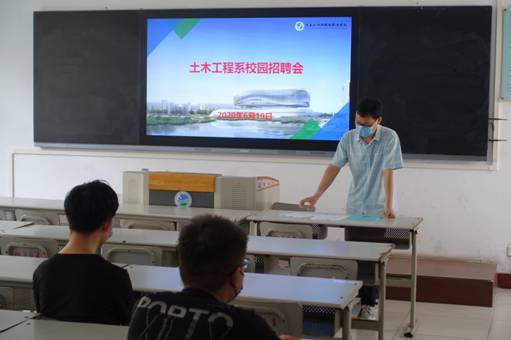 2020年6月19日上午10点,土木工程系在南教301、302、304、305、404、405教室为第一批返校学生举办了2021届毕业生推介暨顶岗位实习双选会,此次招聘会吸引了十余家优秀企业和用人单位。包括河南省新源建设工程管理有限公司;河南诚信工程管理;河南清鸿建设咨询有限公司;中城沪建工程咨询有限公司;河南亚投建设工程有限公司;河南水投建设集团有限公司;河南诚建检验检测技术股份有限公司等,共提供就业岗位161个,招聘主要针对建筑工程技术、工程造价、建筑工程监理、装配化施工技术等专业毕业生。